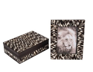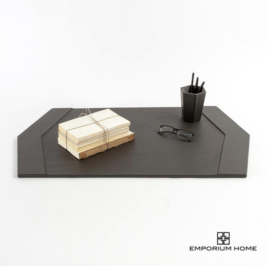 Desk Organizer Box - Ostrich Leather/Suede - Black
