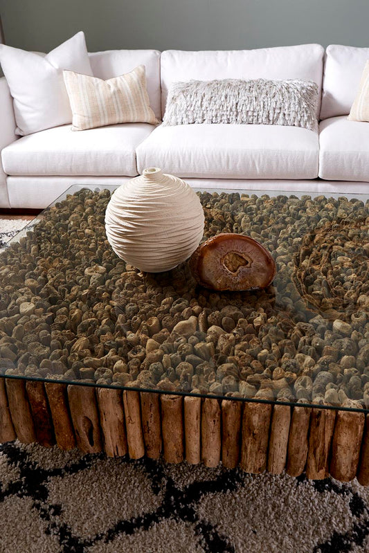Cast Organic River Stone Coffee Table, Resin, Faux Gray Stone