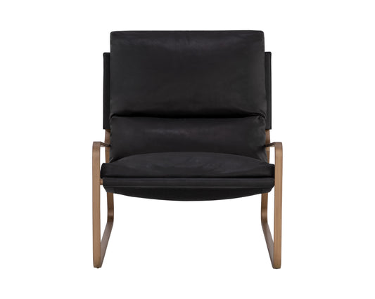NAHLA ZANCOR LOUNGE CHAIR - ANTIQUE BRASS - CHARCOAL BLACK LEATHER