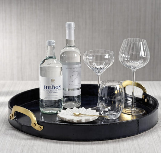 Savoy Leather with Brass Handles Round Tray - Blue and Golden