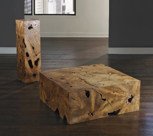 Teak Slice Coffee Table, Stainless Steel Legs, Rectangle