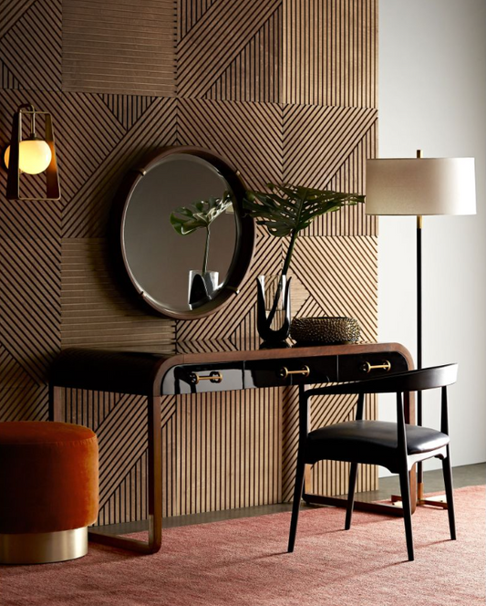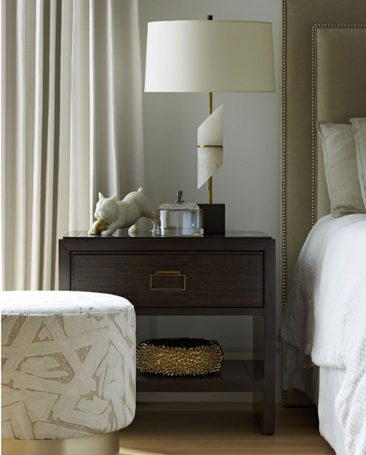 NAHLA ENDALL OTTOMAN - ANTIQUE BRASS - VINTAGE BLACK NIGHT LEATHER