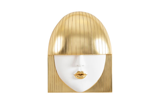 Fashion Faces Wall Art, Large, Pout, White and Gold Leaf