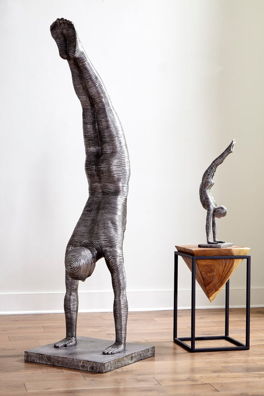 Atlas Side Table, Chamcha Wood, Gray Stone Finish, Metal