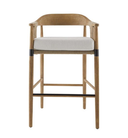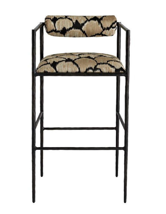 Marley Bar Stool, Gray Stone Finish, Stainless Steel Foot Rest