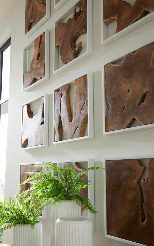 Framed Slice Wall Tile, Teak Wood, White Frame