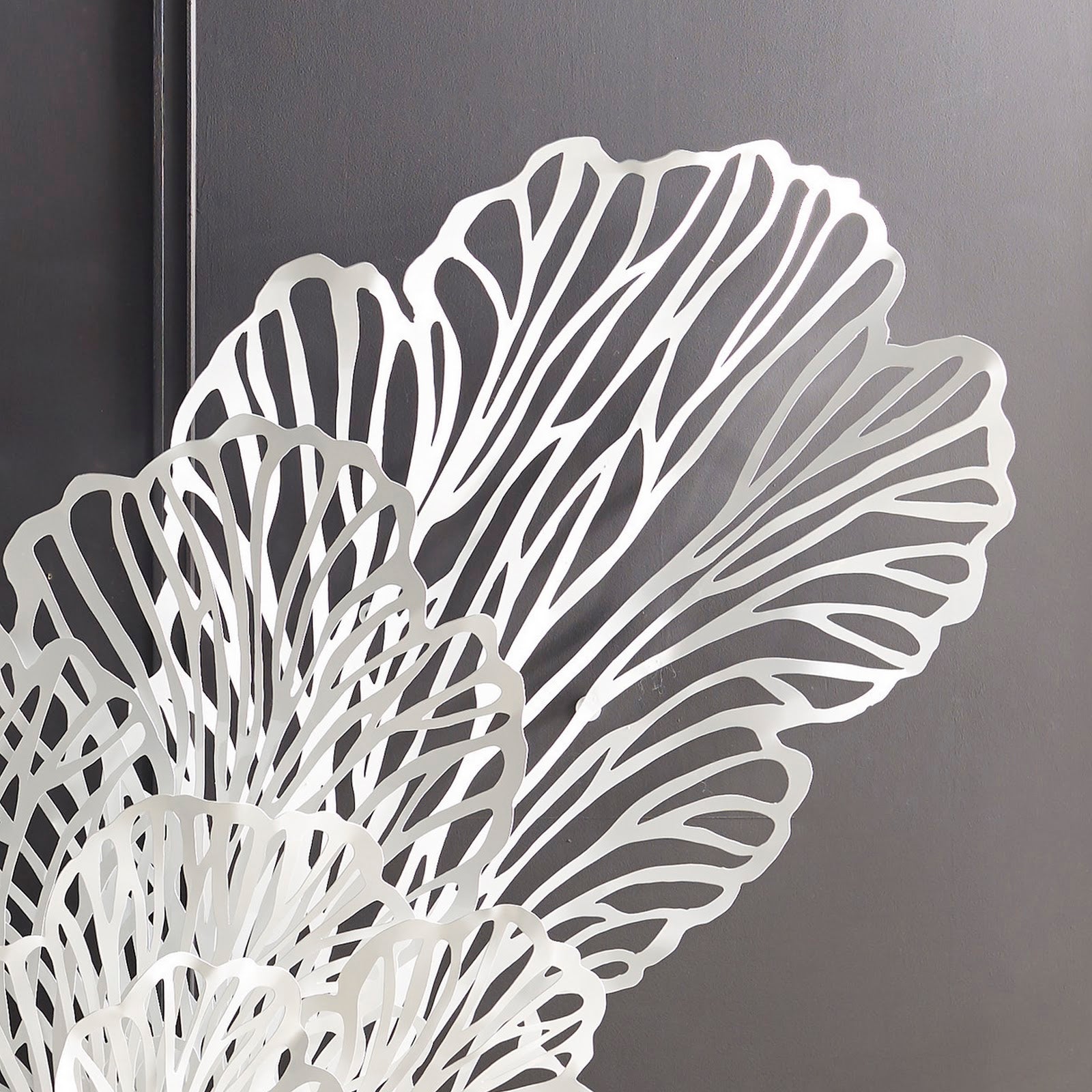 The lacy profile of the Small White Butterfly Wall Sculpture flows out from the wall and sweeps up into filmy wings. Though the effect is one of fluidity, this decorative accessory is made of metal that has been powder-coated in a crisp white. Placed on a pale wall, the tone-on-tone beauty will become more evident when light wafts through its intricate veining to create shadows. Hung on a boldly colored wall, it will contrast any hue beautifully. We offer these decorative sculptures in three sizes, which are even more powerful when hung in tandem. This piece is the perfect representation of the Phillips Collection ethos: modern organic.