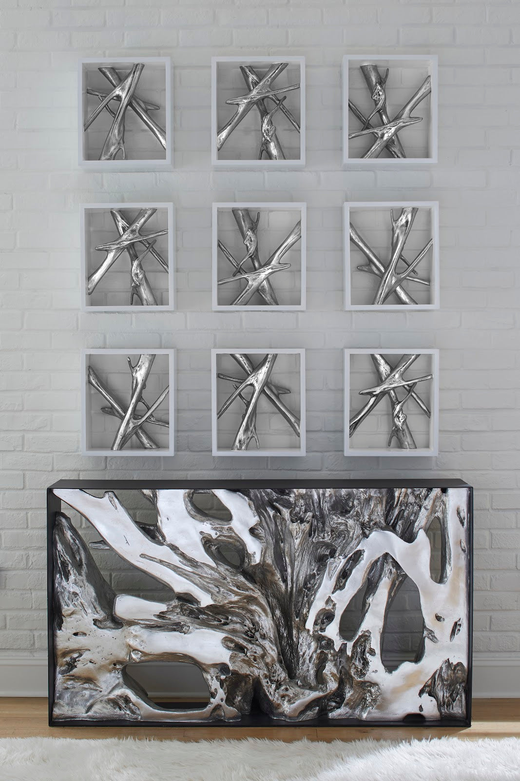 Cast Root Metal Framed Console Table, Resin, Silver Leaf, SM