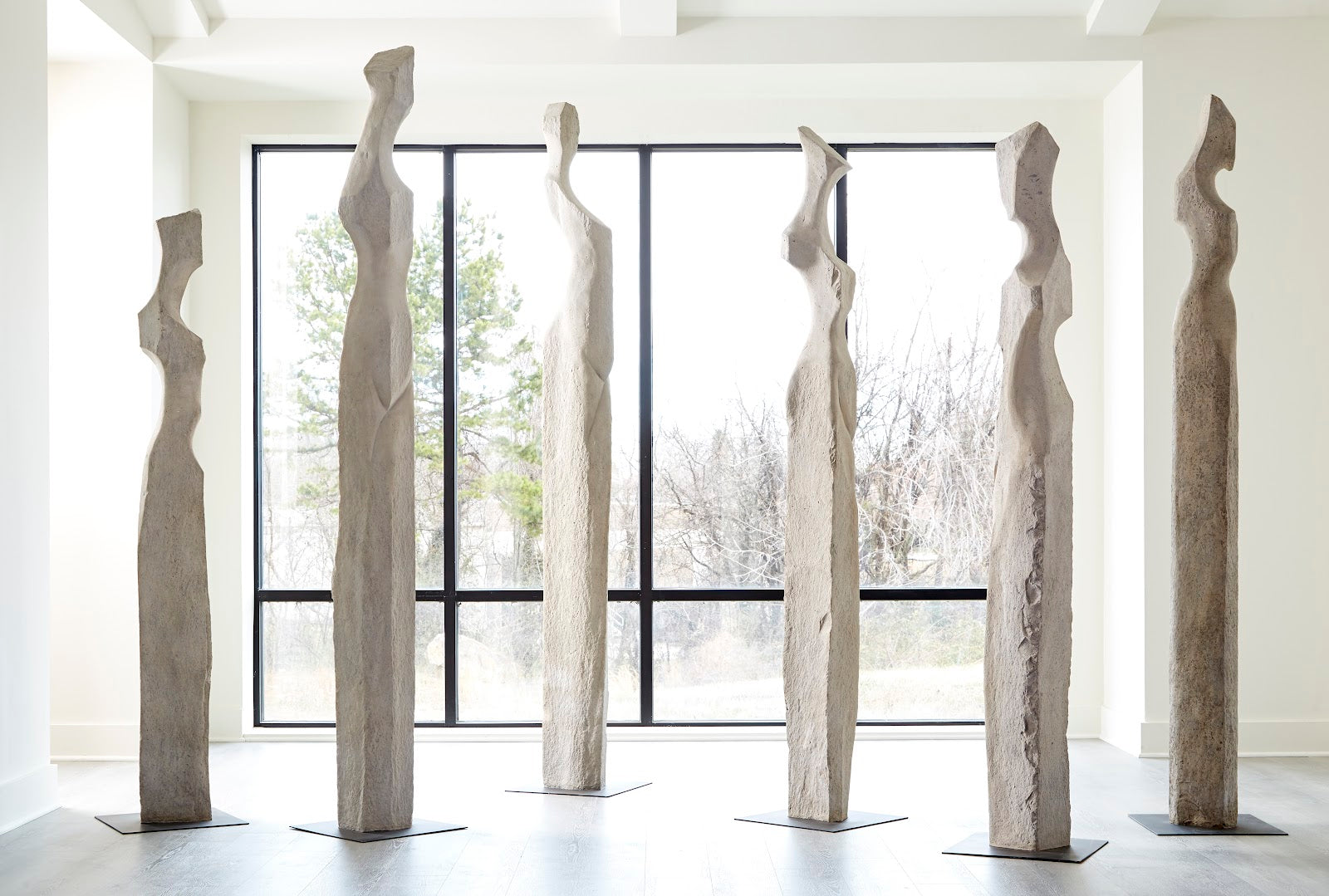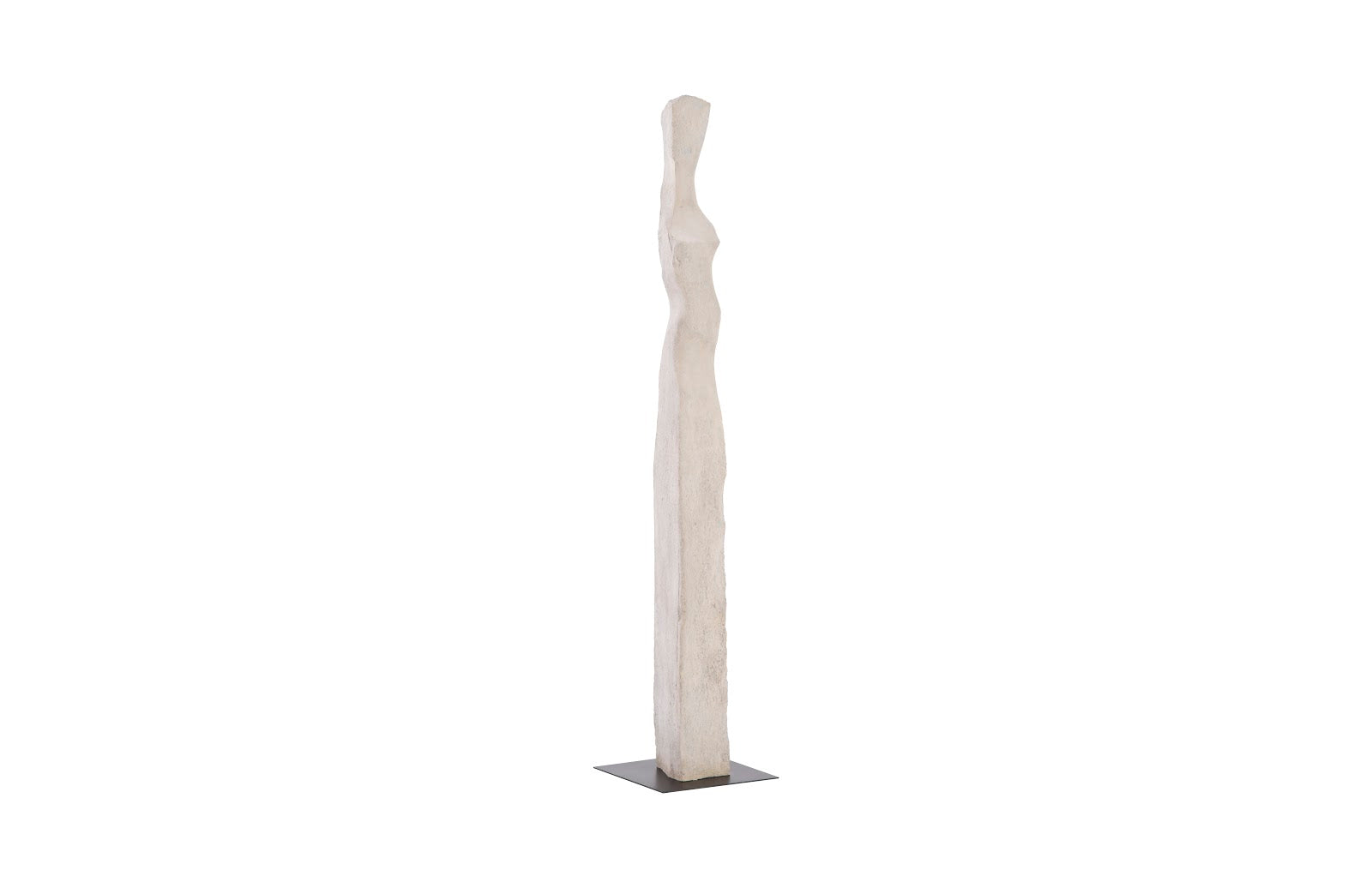 The female figure has been celebrated in art as long as artists have been expressing their creativity. The Colossal Ivory Cast Woman Sculpture D is an abstracted female form in amplified proportions at 79-inches tall. The Roman Stone finish brings it a vintage vibe, and the aged patina makes this decorative sculpture look like it’s made of stone. We have six variations of this tall, thin sculpture in ivory and six in a Roman Stone finish for a darker gray surface.