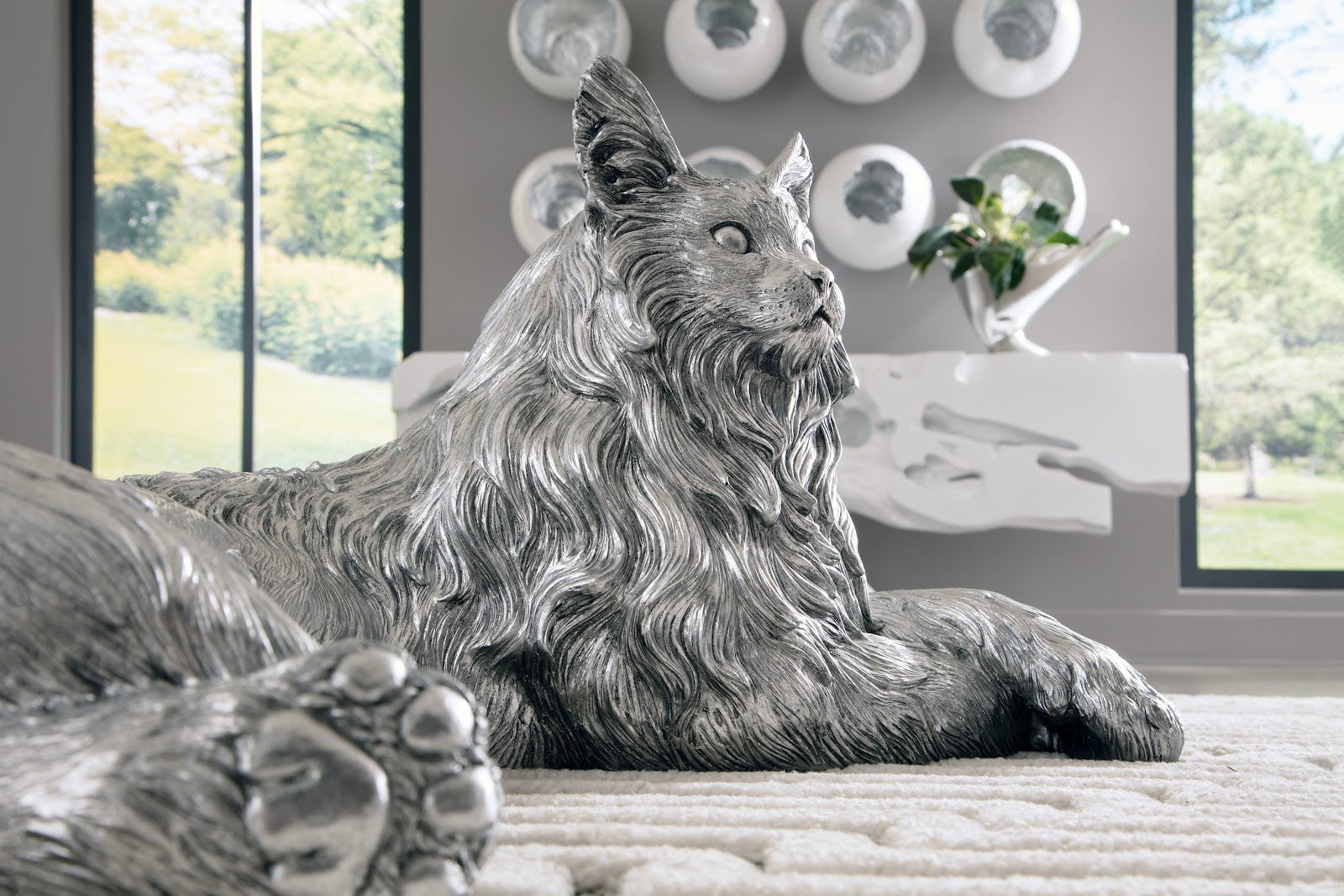 We all love a man's best friend, but there is just something about an affectionate and sweet-natured cat to have in our life. Here at Phillips Collection, we have conquered capturing the essence of a cat owner's dream in creating our first, but definitely not last, Cat Sculpture. Artisans have sculpted and captured the strikingly long and fluffy tail and laying pose of a popular cat breed. Cast in artisan grade resin and finished in one of our popular finishes; silver leaf. If you love cats, this sculpture will be a forever companion in your space.