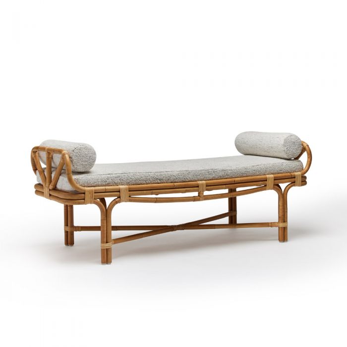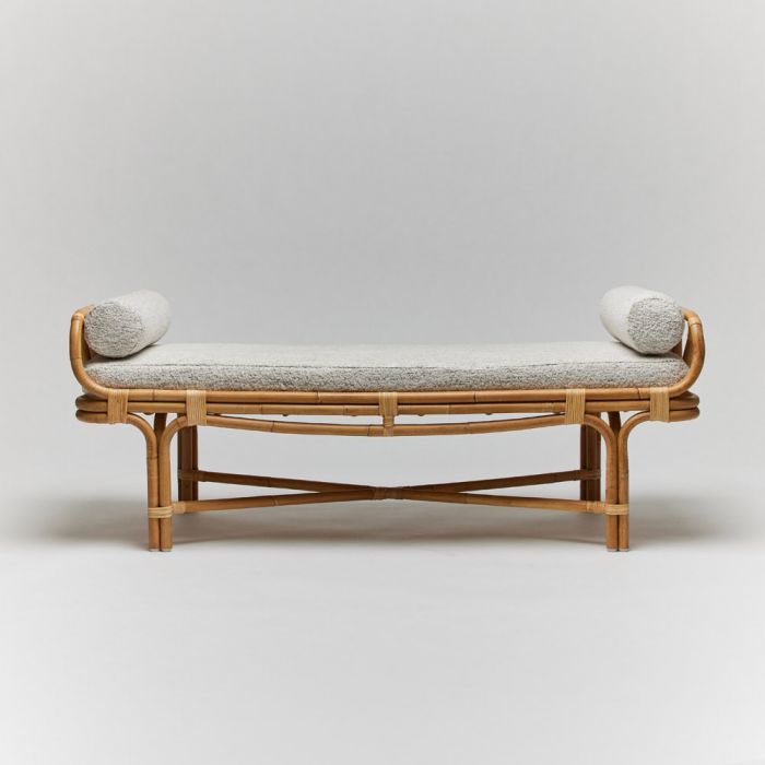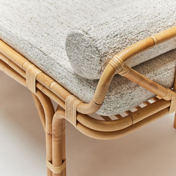 Inspired by idyllic tropical locales and serene escapes, the Grayton Bench, crafted from organic rattan, invites you to bask in its presence wherever it resides.
