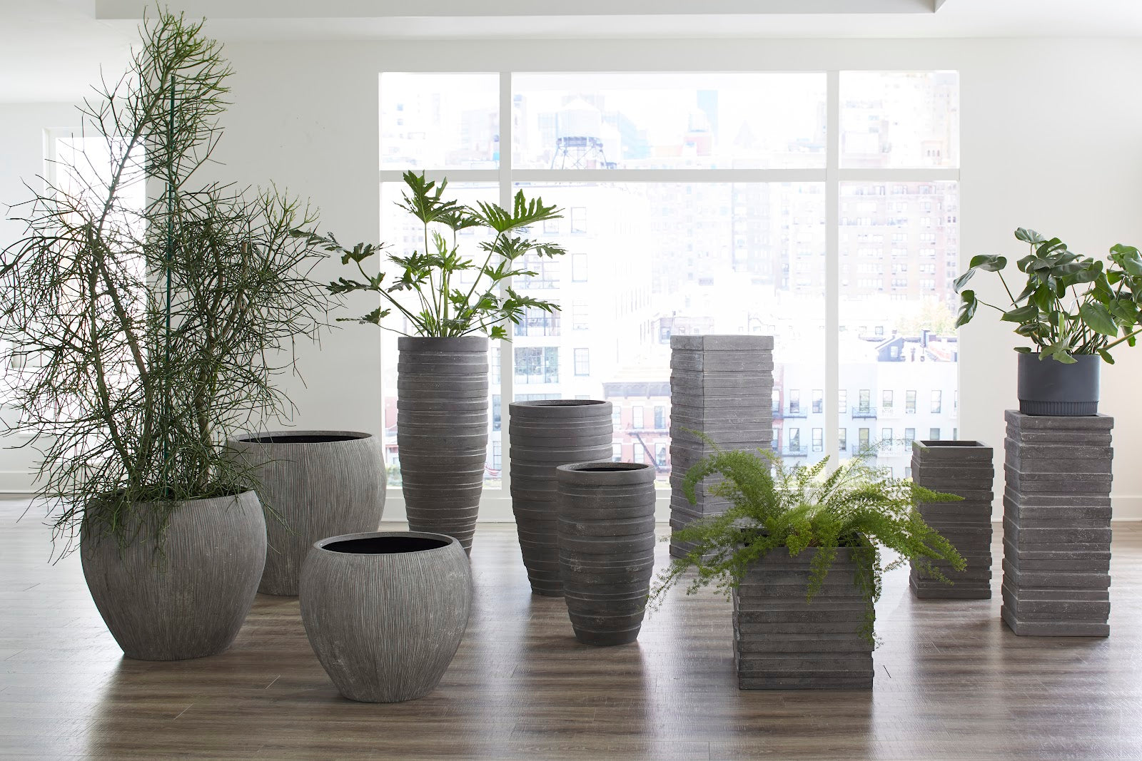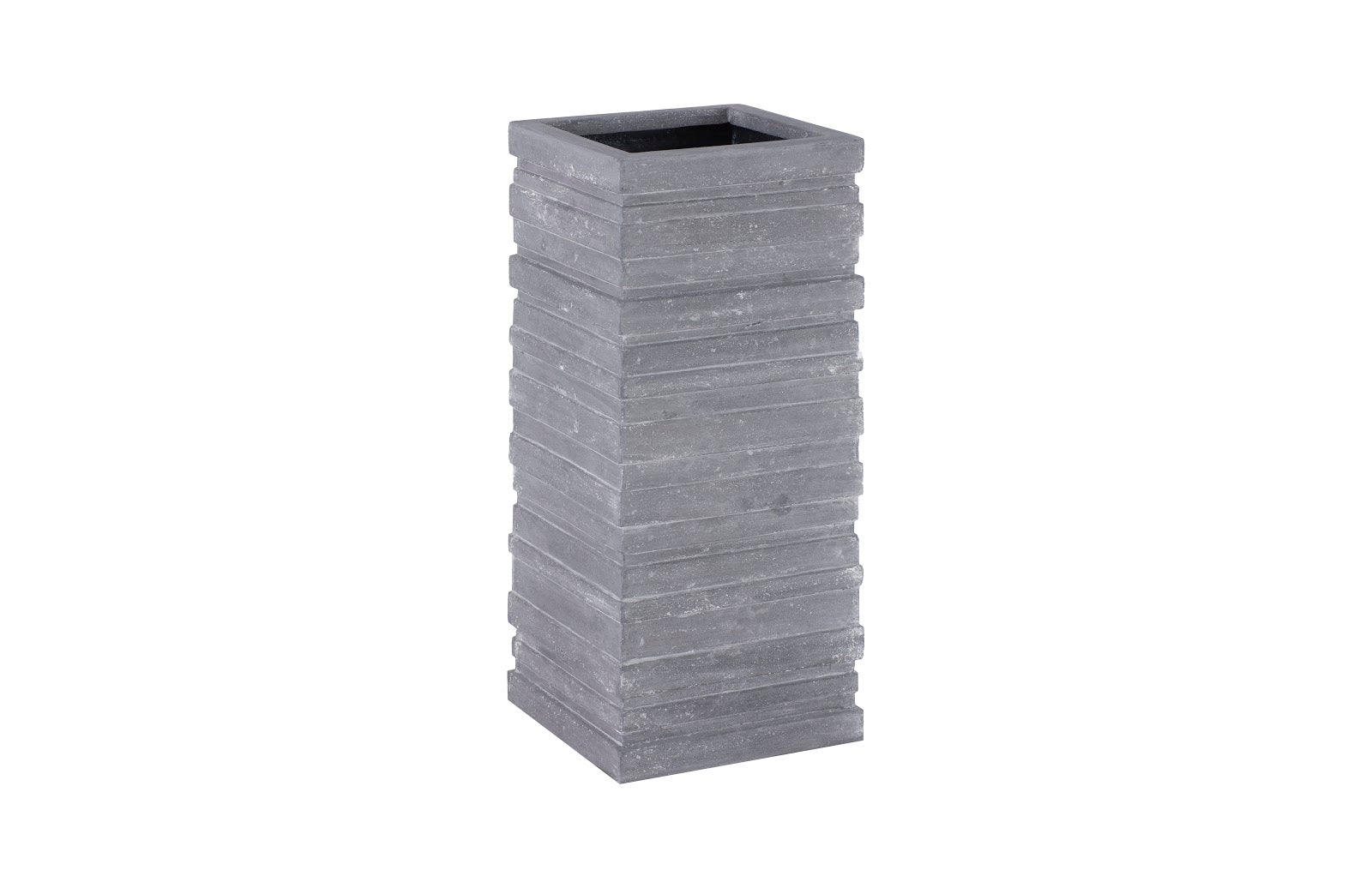 The June Large Square Gray Planter is good-looking in its handsome gray finish. Made of composite, its surface is striated to mimic fabric that has been wrapped around a vessel and slathered in a beautiful papier-mâché treatment. One of the loveliest aspects of this design is that it is strikingly contemporary for a garden planter thanks to its attractive gray finish and the top lip that rolls into its interior to leave the shape clean-lined. We offer this gray garden planter in a number of sizes and shapes, and we have white planters in an array of sizes. Each of these reflects the ethos that Phillips Collection personifies: modern organic.
