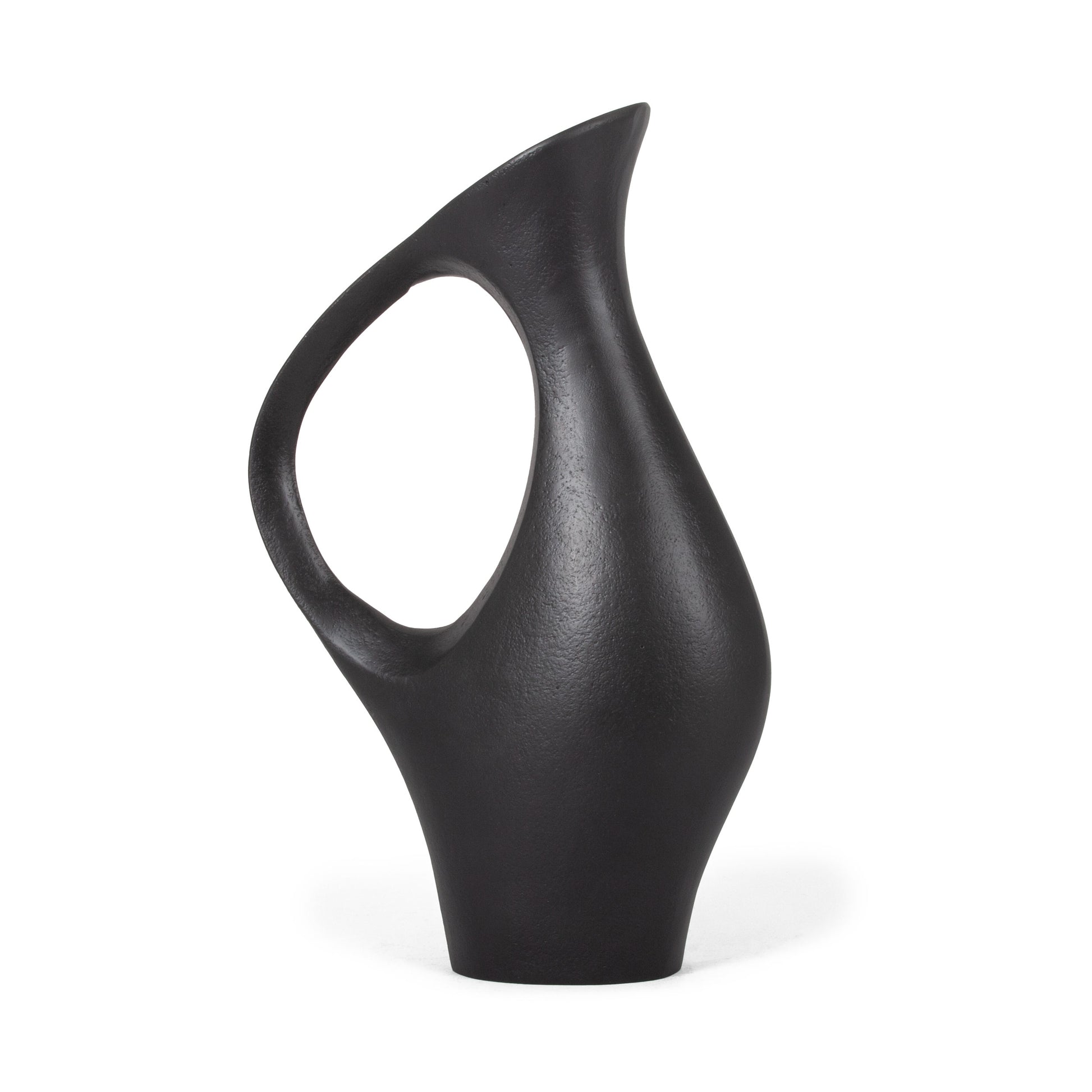 Crafted from durable cast aluminum, these exquisite vases boast a timeless jug design that seamlessly blends tradition with modern elegance. With a sturdy handle and a graceful pour spout, each vase exudes sophistication and charm. Available in two distinct styles, the small black option stands at 14 inches tall, while the large silver variant rises to an impressive 17 inches, making them striking standalone pieces or captivating complements to any decor scheme