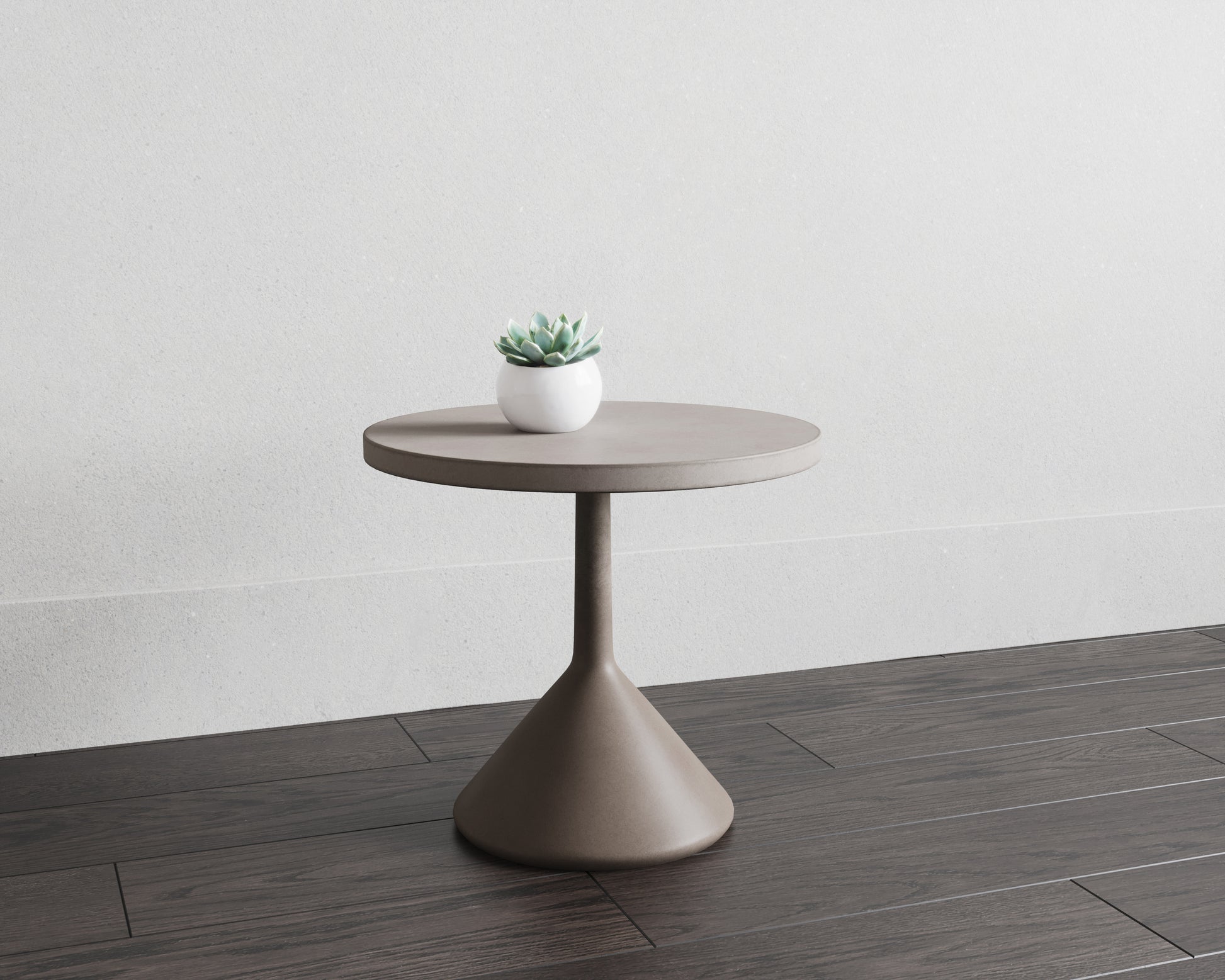 Inspired by brutalist architecture, this concrete coffee table will be a bold addition to your space. Features a grey concrete round top with a solid base.