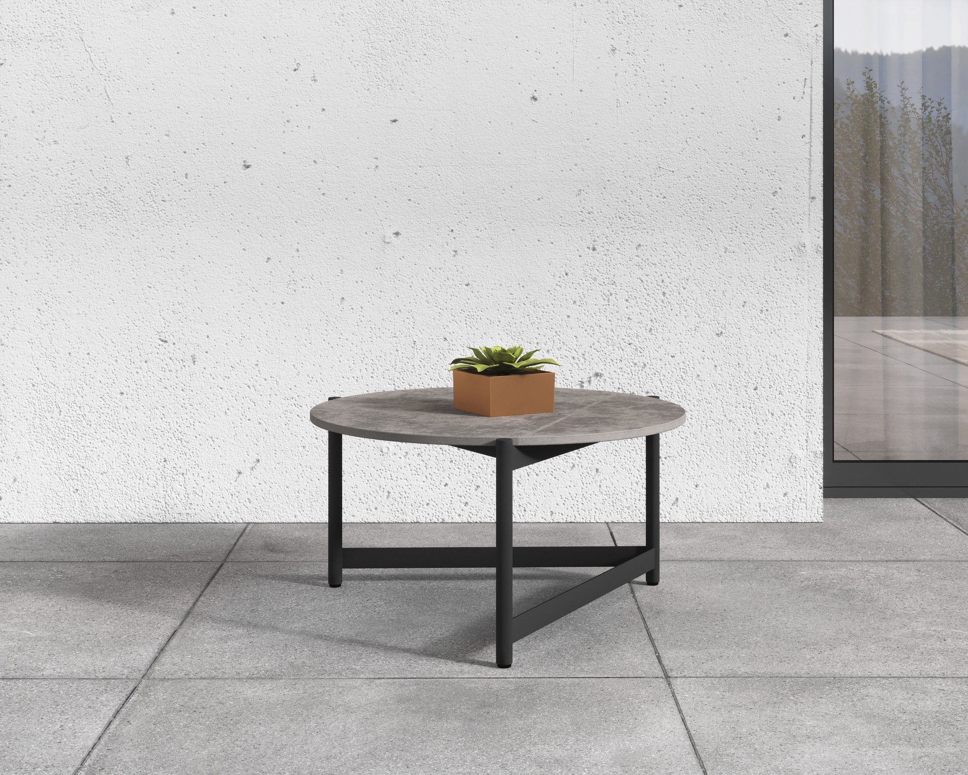 Complete your outdoor lounge with this modern coffee table from the Outdoor by SUNPAN collection. Features a black powder-coated aluminum frame and a grey ceramic top. Each ceramic top will look different, with unique variations of grey hues and veins that will enhance over time.
