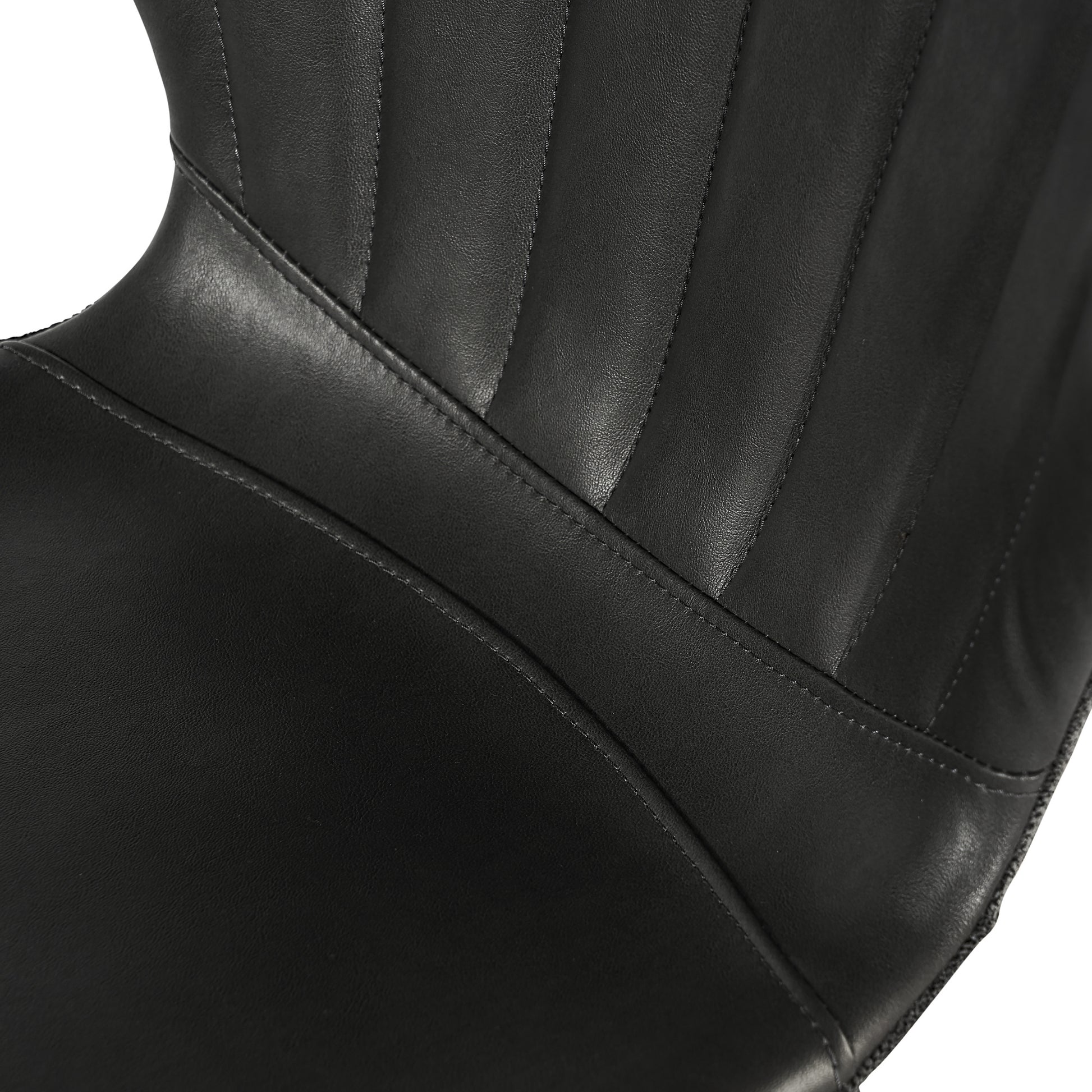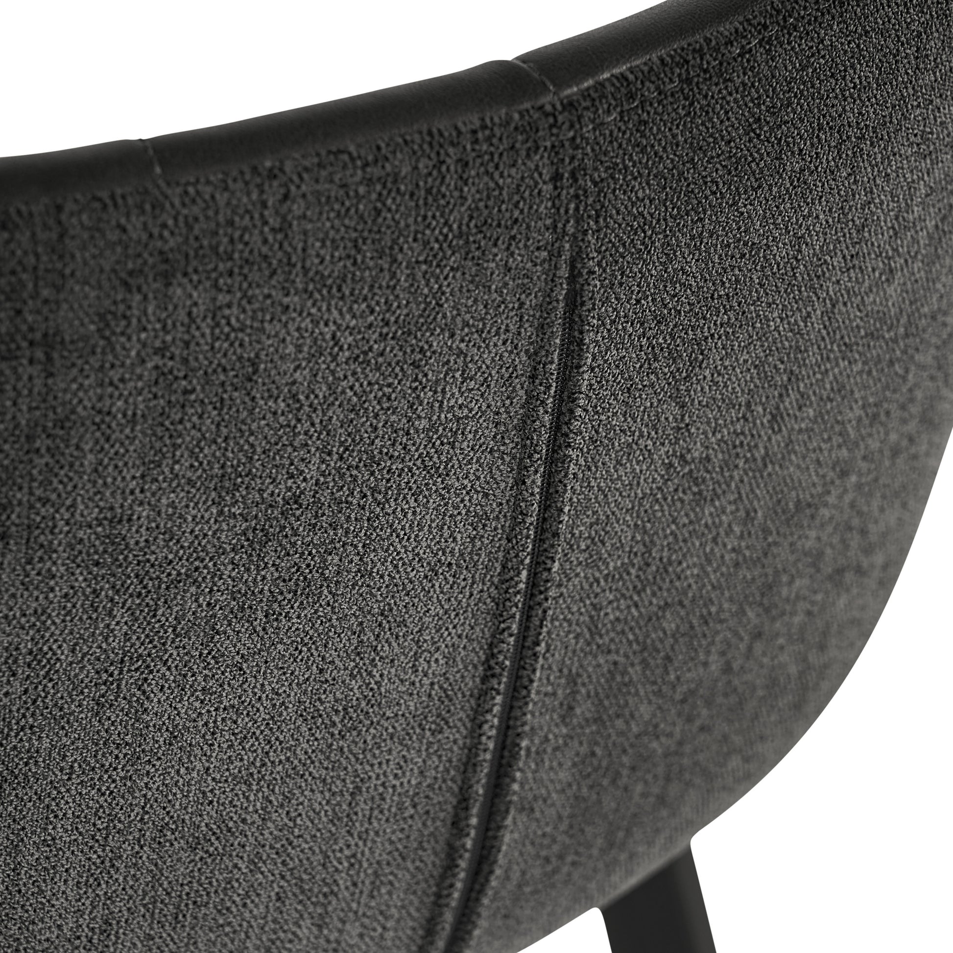 A compact counter stool designed with a modern, feminine style. Features clamshell style tufting on the seatback. Stocked in bravo portabella faux leather with a contrasting kohl grey performance fabric exterior. Finished with black steel legs. A stylish seating option for dining spaces of all sizes. Handle With Care: This design has been crafted with faux leather. Faux leather is manufactured to reflect the natural characteristics of leather; as such, colour variations, markings wrinkles, grooves, and light scratches are appreciated characteristics. No two pieces will be alike. Visit our Product Care page for more information on how to ensure the lasting beauty of this piece.