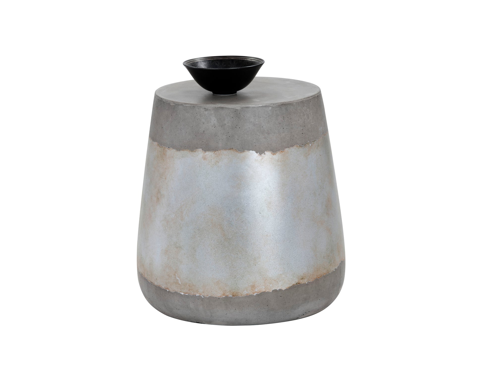 A beautiful side table with a stunning pop of metallic. The Aries is stocked in both gold and silver foil accents that pair perfectly with the industrial grey concrete. A versatile and functional piece