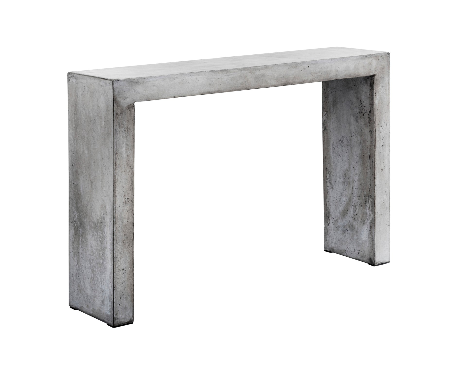 This console makes a bold statement with its clean lines and concrete construction in grey and black. Ideal for small spaces with its narrow depth.