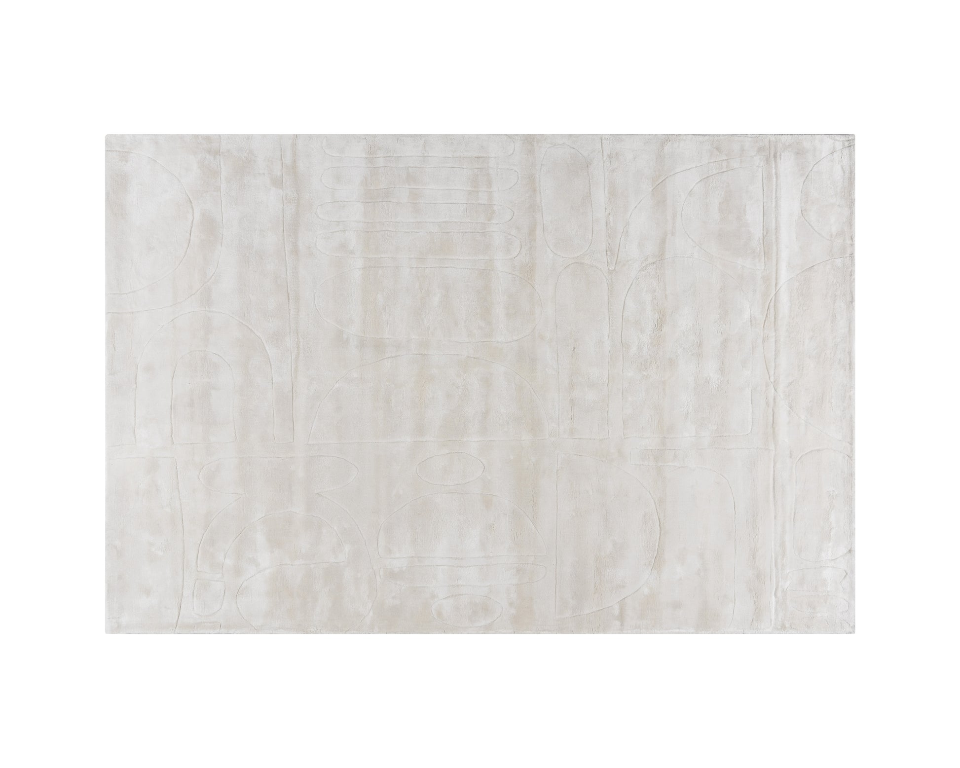 Crafted by local artisans, this hand-loomed rug has a rich texture with a velvety soft finish. Made with cream and ivory viscose with unique patterning featuring organic shapes. Available in four sizes. Variations in colour, design and size are to be expected and embraced in each rug due to the distinctive weaving process followed by each artisan, resulting in a truly one-of-a-kind piece.