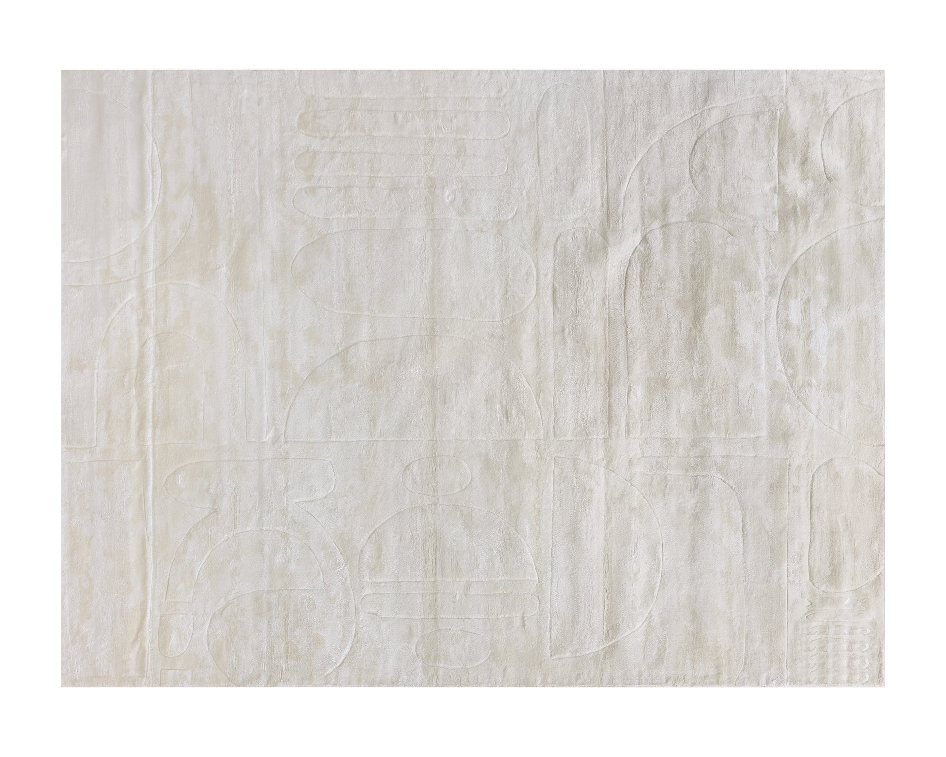 Rich with texture and crafted with a velvety soft finish, this hand-loomed rug is marvelously crafted by local artisans. Made with cream and ivory viscose with unique patterning featuring organic shapes. Available in four sizes. Variations in colour, design and size are to be expected and embraced in each rug due to the distinctive weaving process followed by each artisan, resulting in a truly one-of-a-kind piece.