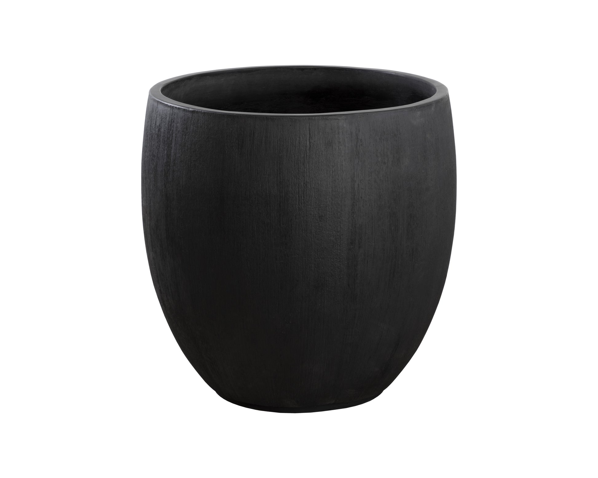 The contemporary form of the large round Coleus Planter allows for a lush display of botanicals that will complement any decor. Constructed from glass fibre-reinforced concrete for increased durability with a protective sealant finish that allows it to withstand the elements. Designed with a black finish with raised texture for added character, this beautiful planter will be a welcome addition to large spaces such as hotel lobbies or building entrances. Includes holes for drainage, two steps, and removable shelf inserts.
