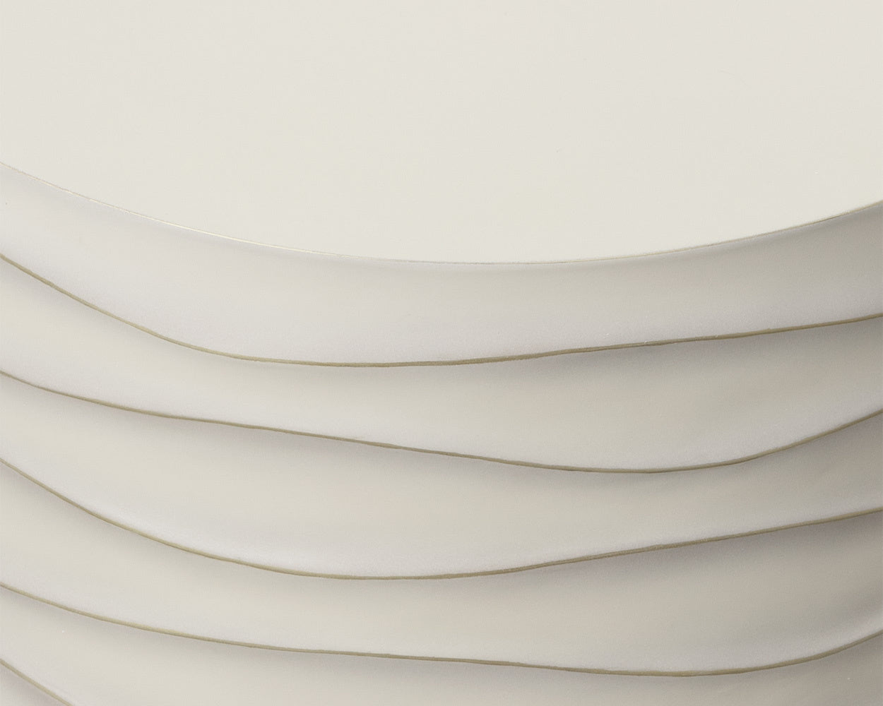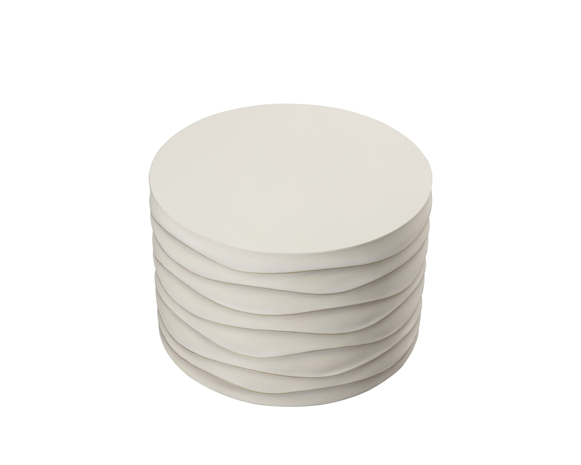 This round coffee table will bring a minimal aesthetic to any environment. Crafted from concrete, this piece features hand sculpted ridges with a painted brass finish. The perfect addition to living, lounge and office spaces.