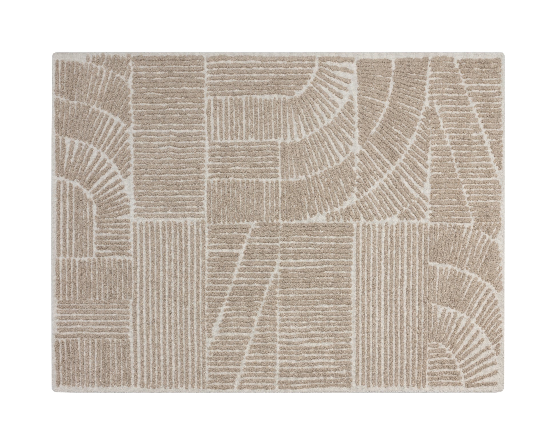 Formed from the carved plush pile of the Corinthia Rug is an abstract design composed of varying line arrangements. Hand-woven from a blend of wool and viscose for a luxuriously soft finish.
