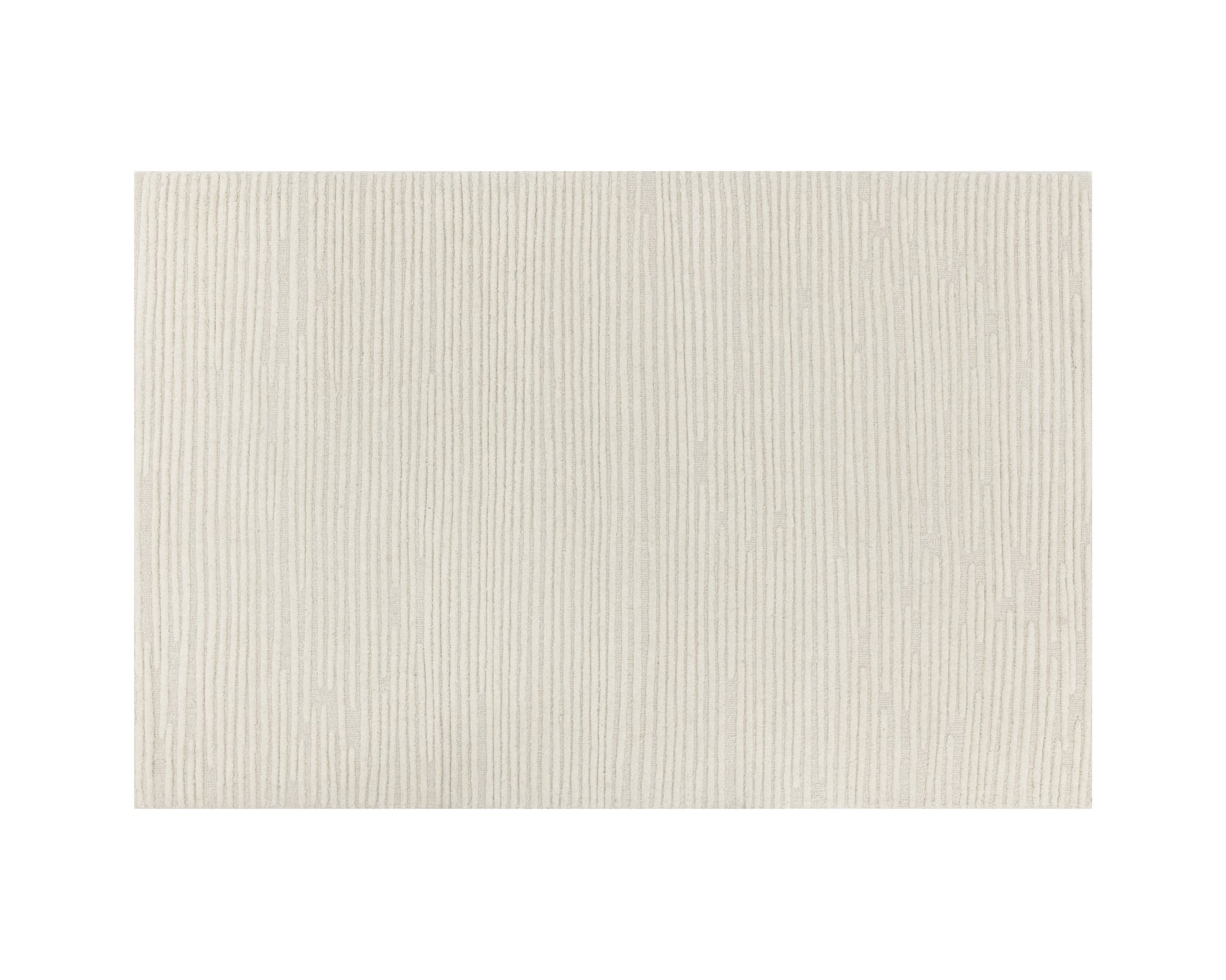 Linear lines decorate this pure wool rug for added softness and texture. Hand-woven by skilled local artisans in ivory and beige colourways. Available in four sizes. Variations in colour, design and size are to be expected and embraced in each rug due to the distinctive weaving process followed by each artisan, resulting in a truly one-of-a-kind piece. Shedding is inherent to wool rugs and will subside over time with regular vacuuming.