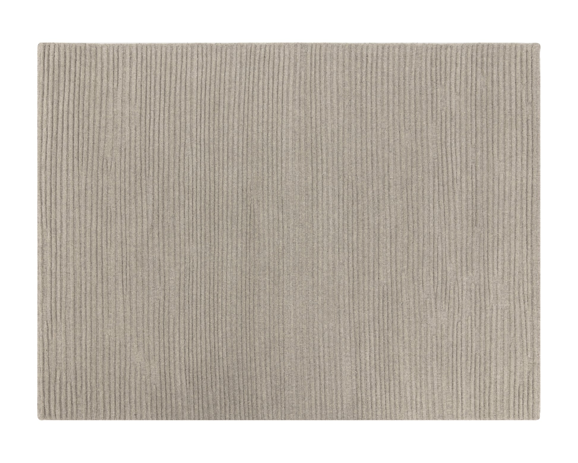 Linear lines decorate this pure wool rug for added softness and texture. Hand-woven by skilled local artisans in ivory and beige colourways. Available in four sizes. Variations in colour, design and size are to be expected and embraced in each rug due to the distinctive weaving process followed by each artisan, resulting in a truly one-of-a-kind piece. Shedding is inherent to wool rugs and will subside over time with regular vacuuming.