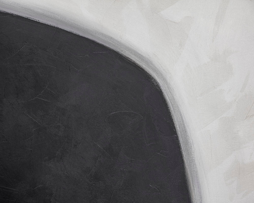 This eye-catching diptych in black and white features modern, abstract figures. A perfect addition to contemporary spaces. Features black finished wood floater frames. Each artwork is hand-painted and will feature slight variations that make every piece unique.