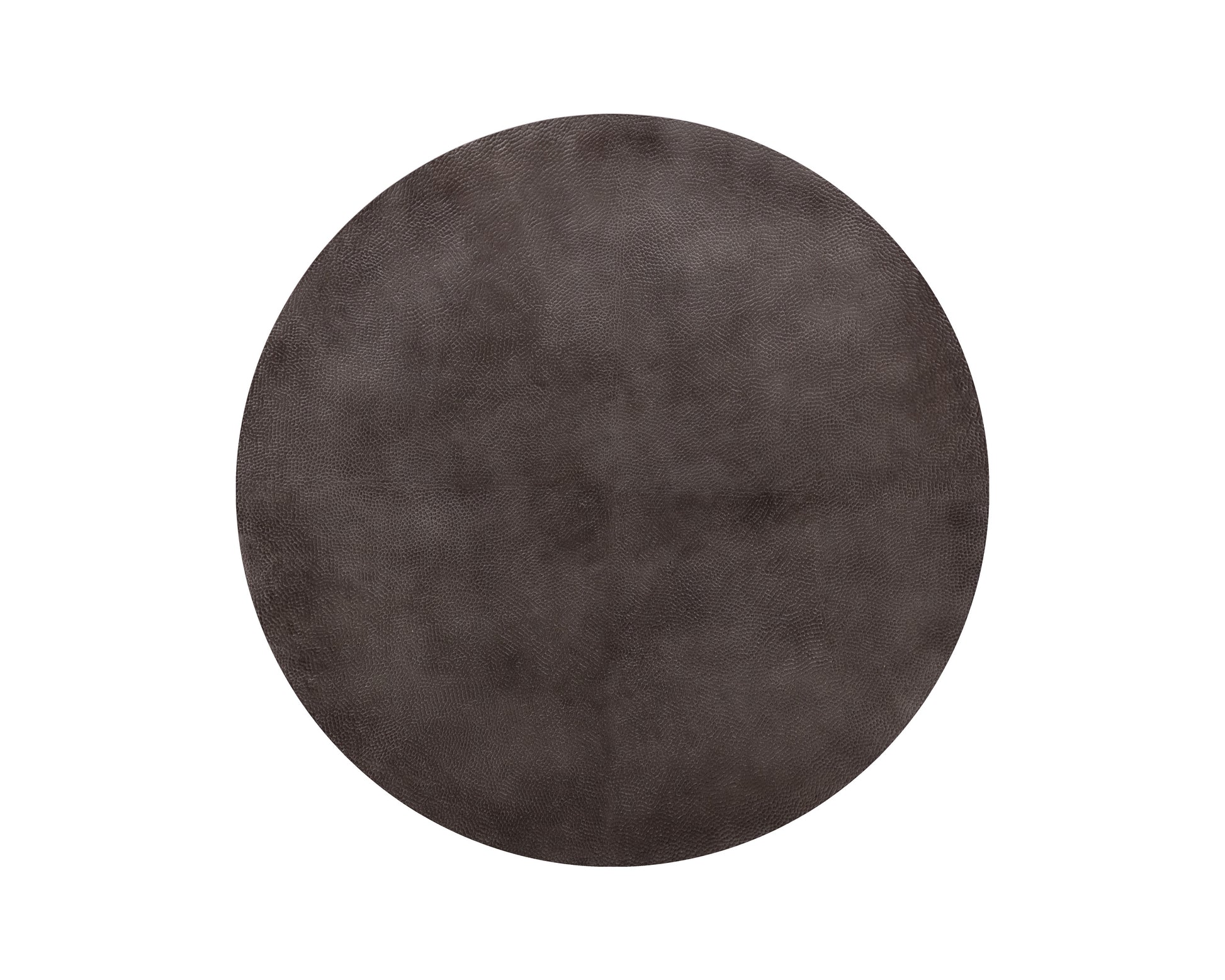 A round coffee table that takes influence from global travels. Features a bronzed gunmetal aluminum tabletop with a textured finish on the top. Completed with a brass stainless steel frame. Made in India. With refined craftsmanship, this design was brought to life by skilled local artisans. Due to the nature of handcraftsmanship, unique imperfections such as fissures, markings and variations in colour and shape are welcomed and appreciated characteristics for a truly one-of-a-kind piece.