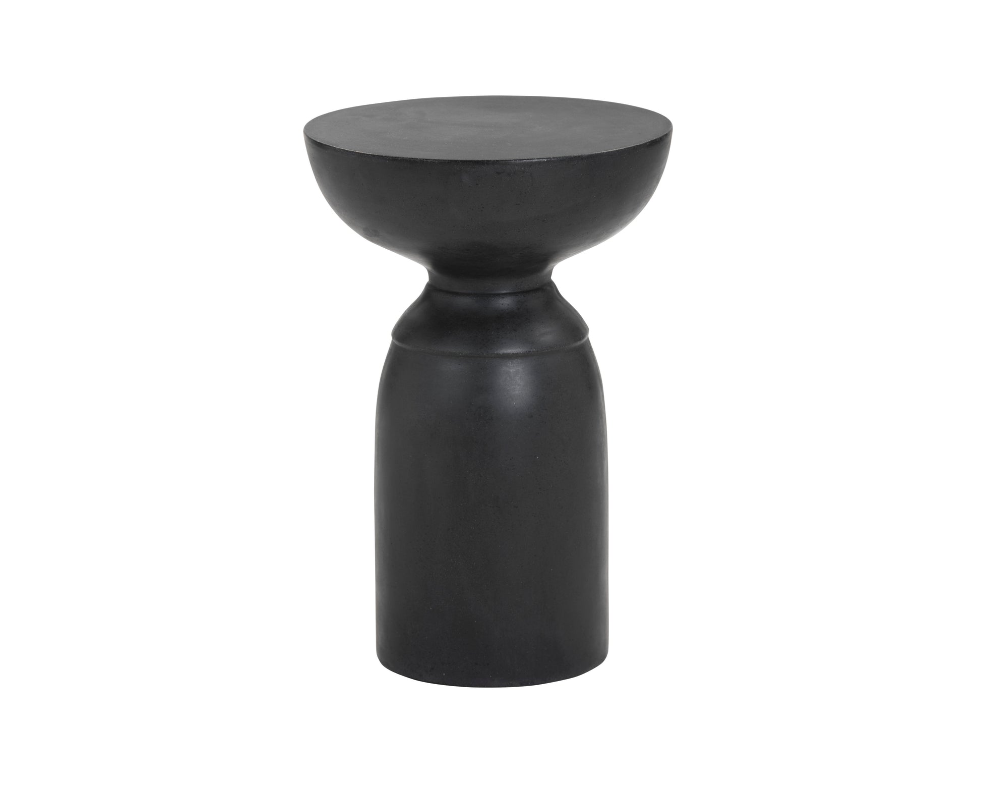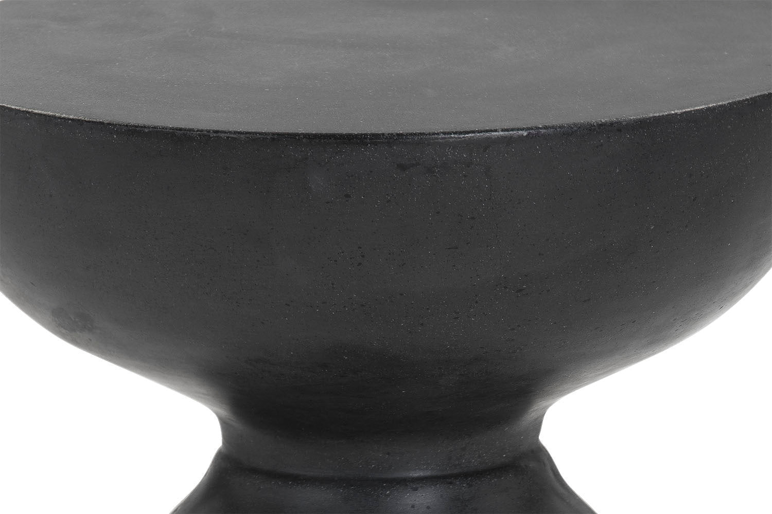 A compact and gracefully sculpted end table. Made from concrete with a painted black finish. This versatile and attractive piece is
