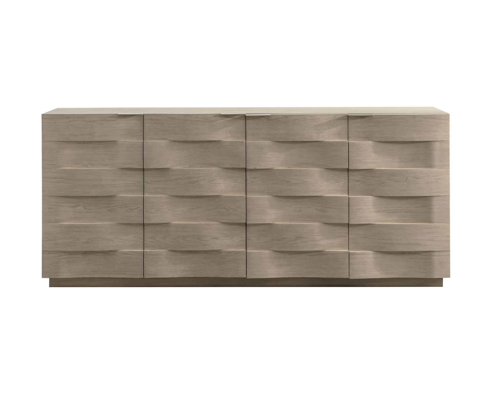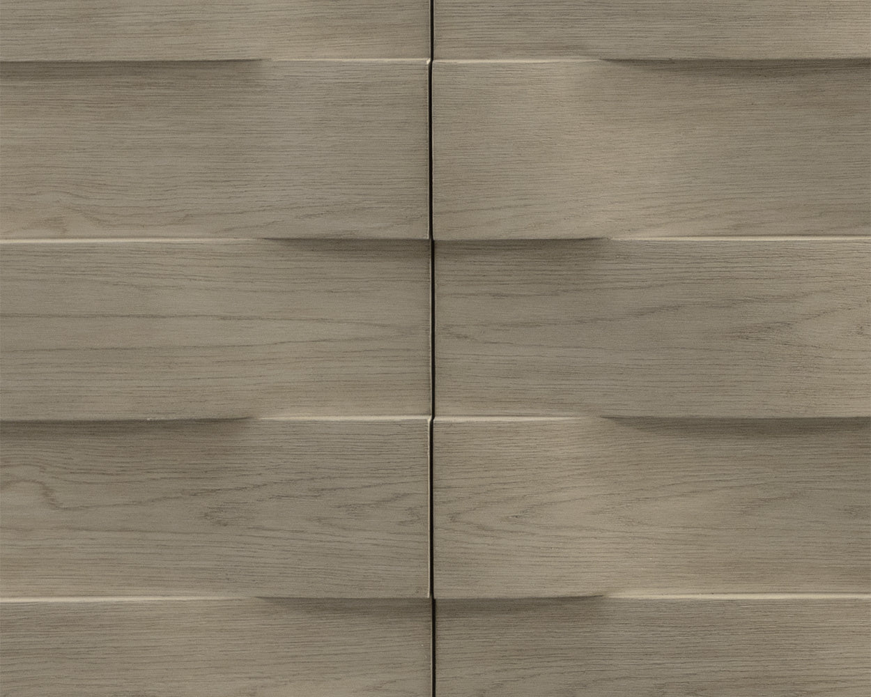 The Hoyos Sideboard is a study in simplicity. The mismatched curved panels on the front doors give added definition to its silhouette. Crafted from poplar wood and oak veneer with warm brass aluminum handles. As wood is an organic, porous material, these pieces will contain natural variation of texture and may also exhibit fine indentations and cracks. Wood pieces will also display a disparity of colour and grain, and visible knots and burls that add to the character of each piece.