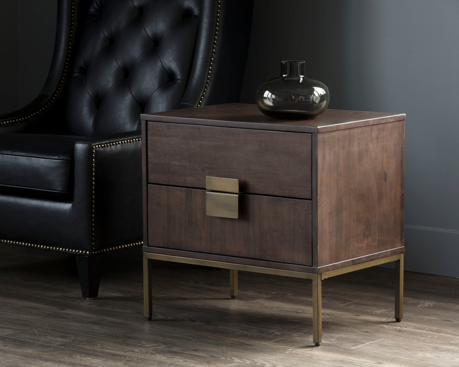 NAHLA JADE NIGHTSTAND - ANTIQUE BRASS - DARK MANGO