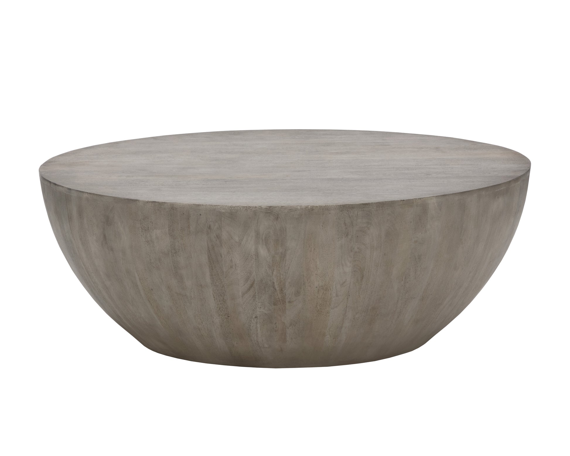 Inspired by global travels, this round, handcrafted drum-style coffee table will certainly add wonder to any space. Made from grey solid mango wood. Also available in dark brown and natural finishes. Made in India. With refined craftsmanship, this design was brought to life by skilled local artisans. By nature, these materials develop unique imperfections such as fissures, markings and colour variations for a truly one-of-a-kind piece. As wood is an organic, porous material, these pieces will contain natural variation of texture and may also exhibit fine indentations and cracks. Wood pieces will also display a disparity of colour and grain, and visible knots and burls that add to the character of each piece.