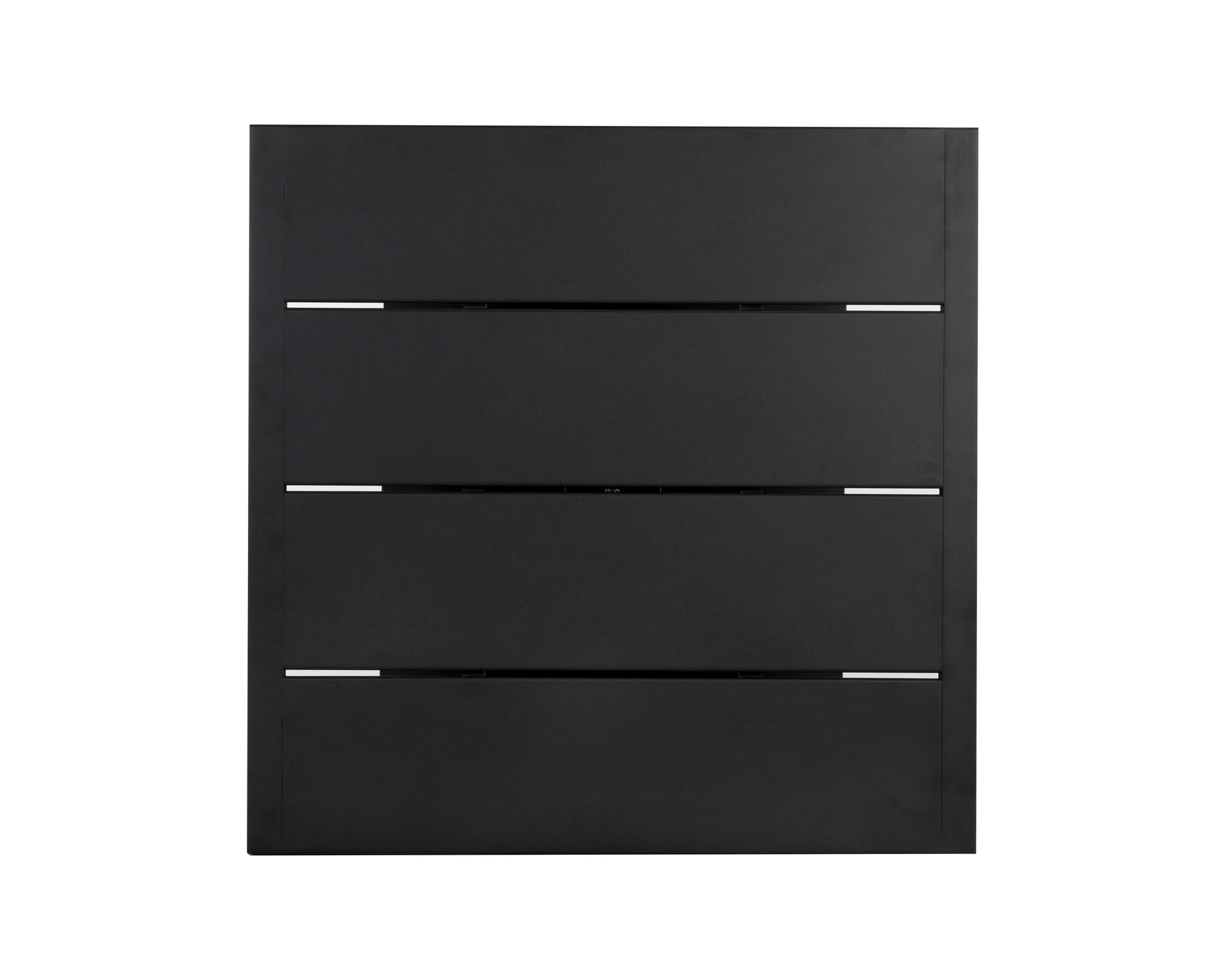 The Merano Bistro Table is a modern take on classic design. Sleek lines define its striking silhouette. Constructed from black powder-coated aluminium with a slatted table top.