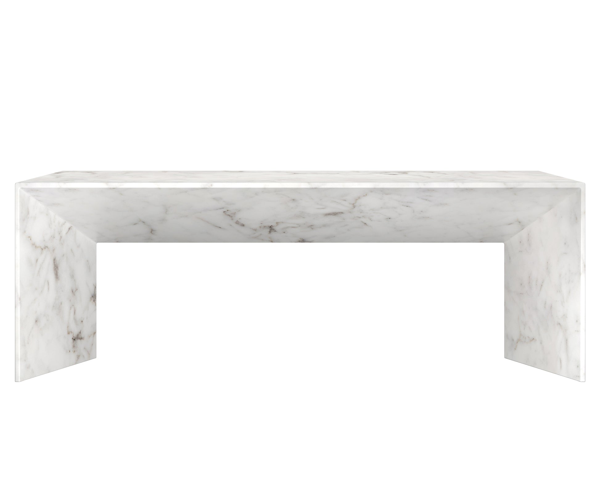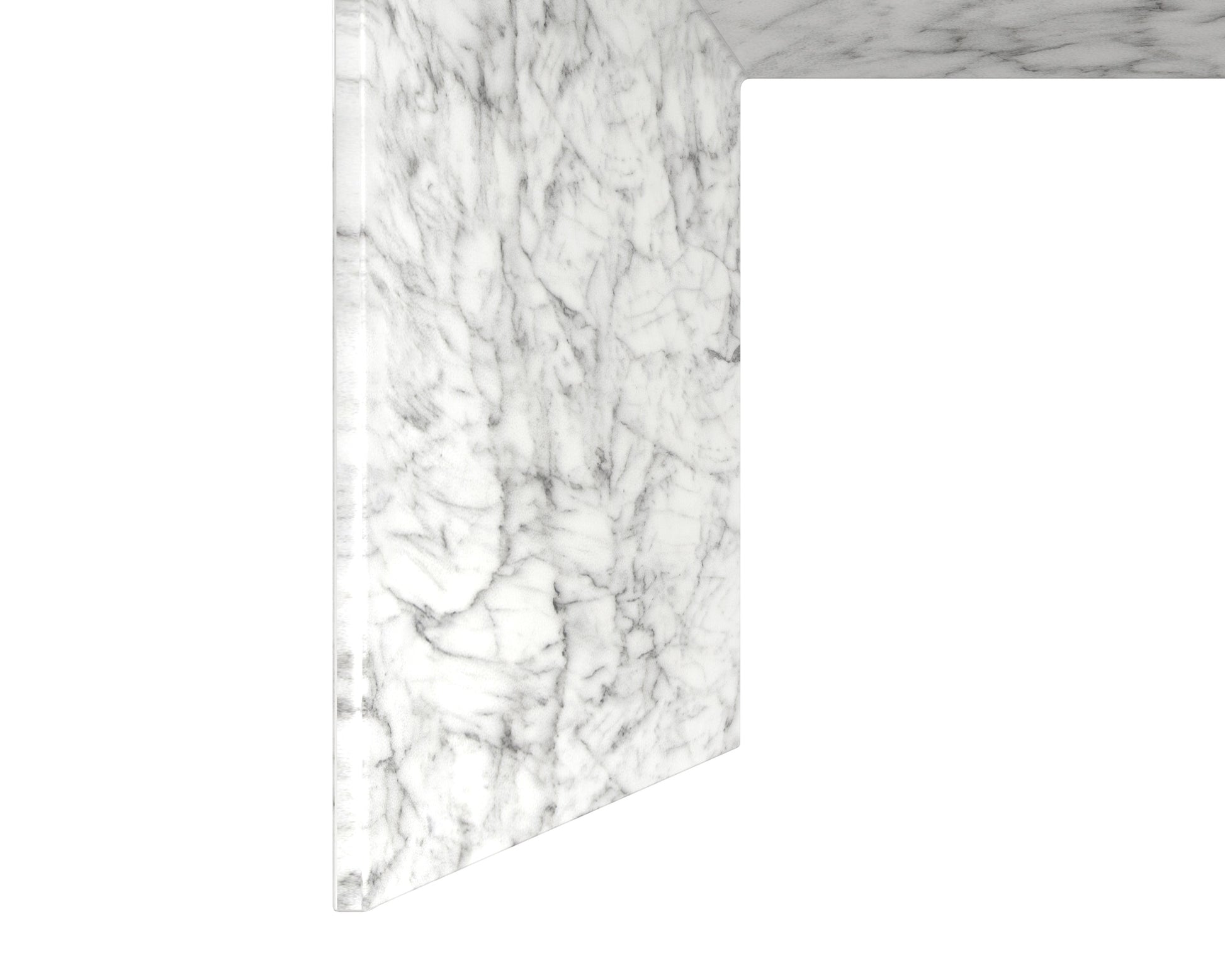 Simple and refined, this concrete coffee table has sharp lines that create visual interest towards the inner frame. Features a white marble look.