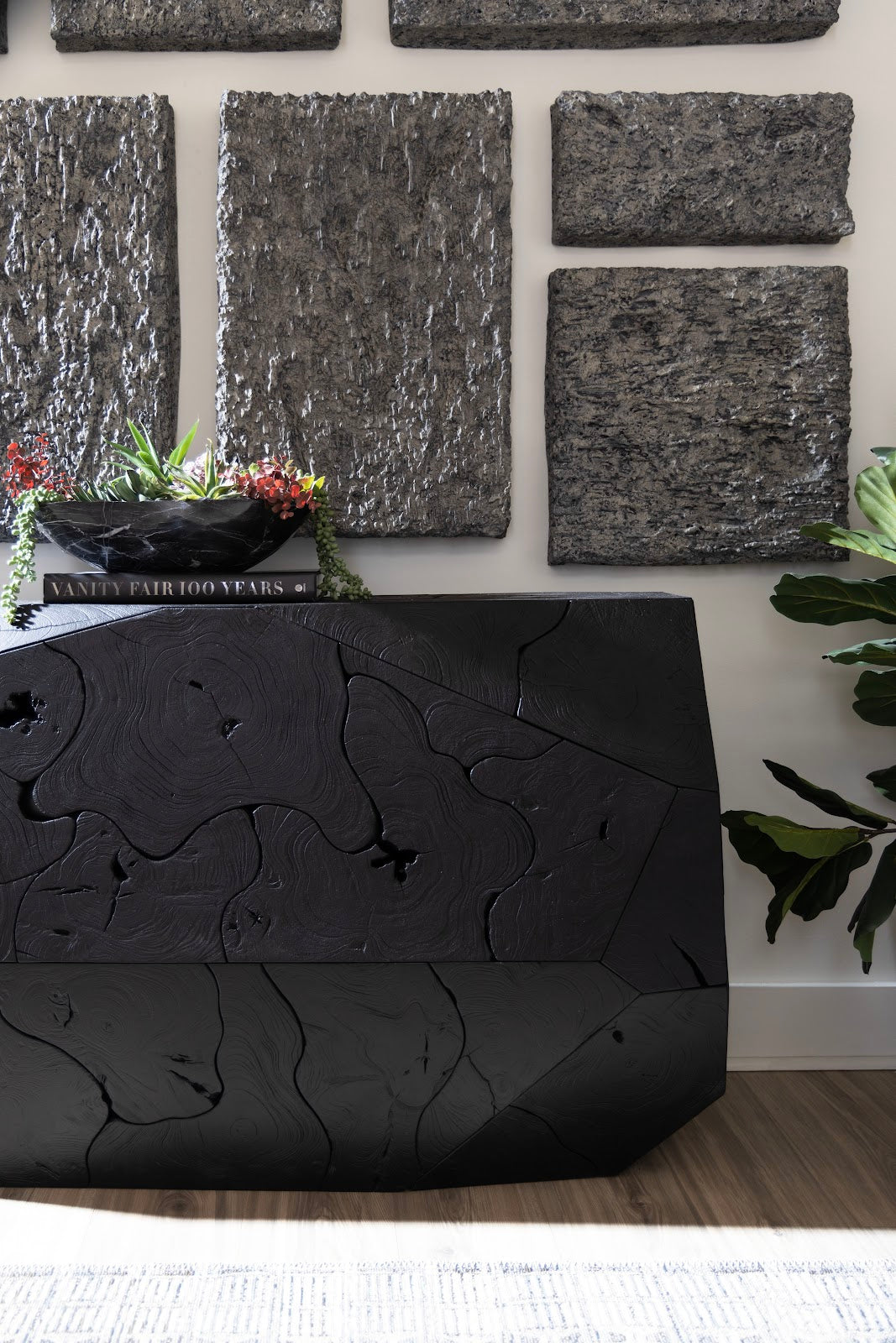 Made from rescued scrap pieces of teak wood and sculpted by artisans; we have pieced together the Prism Console Table. Though the shape is simple, the complexity of the parts that make up the whole illustrates the talent of our craftspeople. When a hint of texture is desired, this wood console table will bring it; it is also fitting for a number of design styles, including contemporary, modern organic, and industrial.