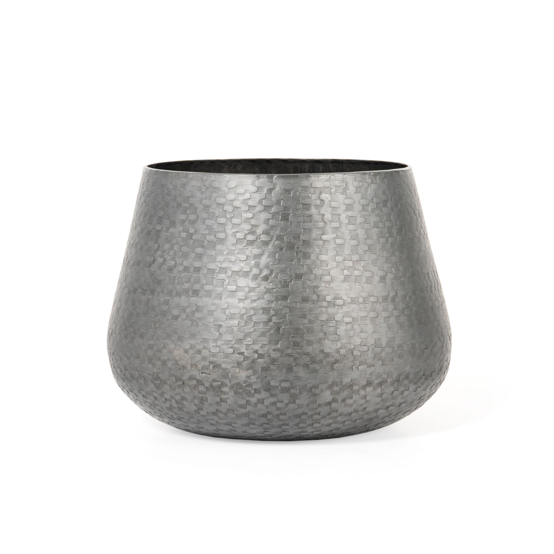 This metal planter is a stylish and practical accessory for any room in your home. Its unique hammered texture surface creates a visually interesting and eye-catching addition to your decor. The grey finish adds a touch of elegance and modernity. At 8" x 8" x 6", this planter is the ideal size for a tabletop, shelf, or desk. Use it to bring some green into your space or as a decorative bowl to hold small items