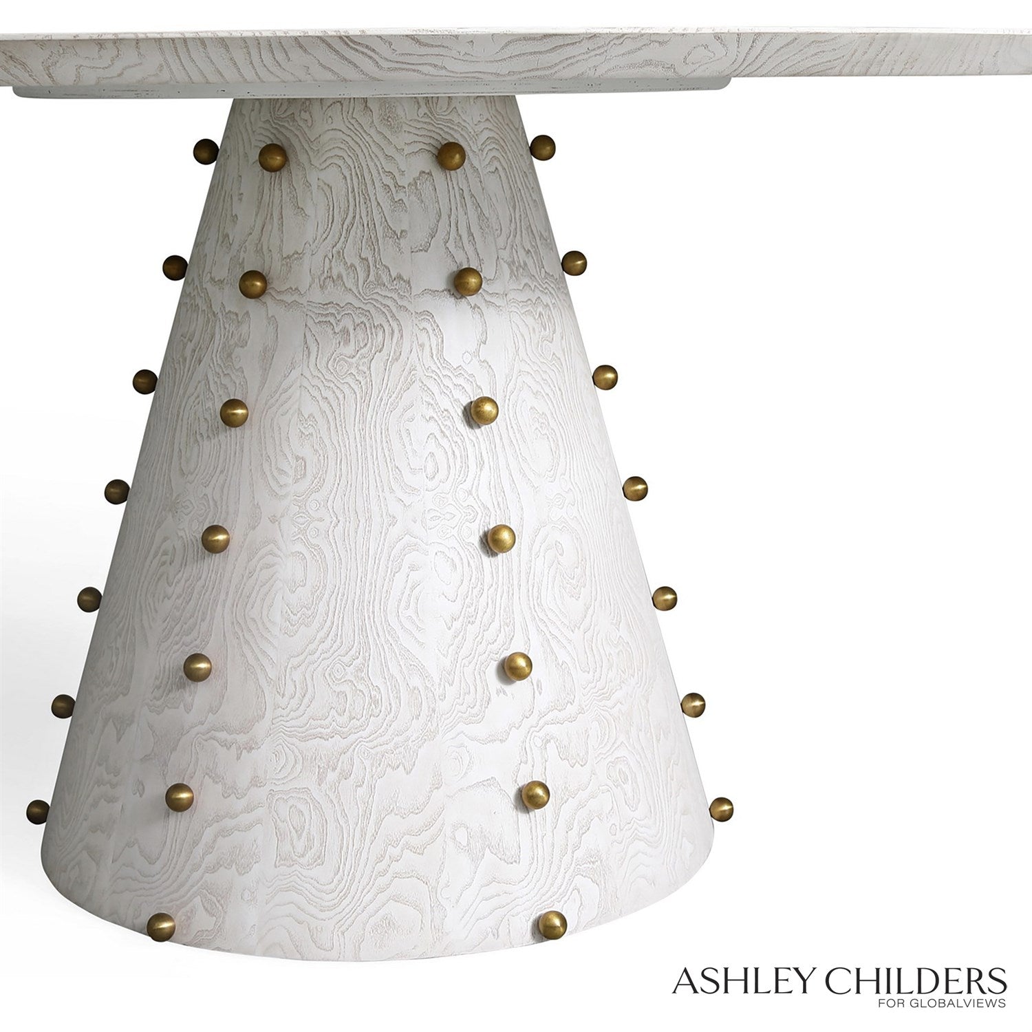 Drawing inspiration from modern forms and luxurious material combinations, Ashley Childers has crafted the Spheres table collection to seamlessly merge contemporary design with exquisite workmanship. Each table boasts hand-selected veneers in either ebony cerused oak or white burl finishes, accentuated by hand cast brass details that add a touch of whimsy to the sophisticated design.