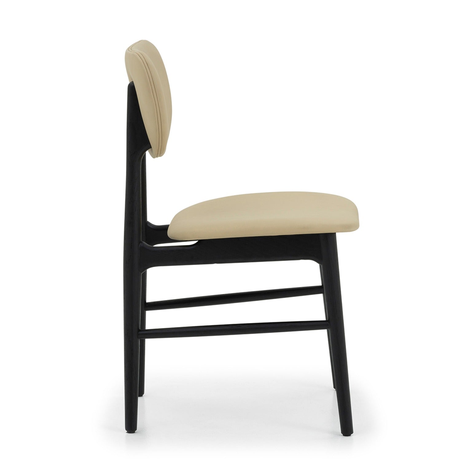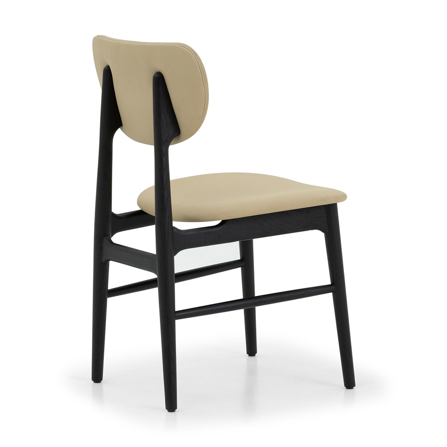 Combining timeless design with contemporary materials, the Stella Dining Chair showcases a refined oak structure finished in matte black, complemented by sumptuous quarry vegan leather seating. This elegant piece reimagines a classic form for the modern dining space.
