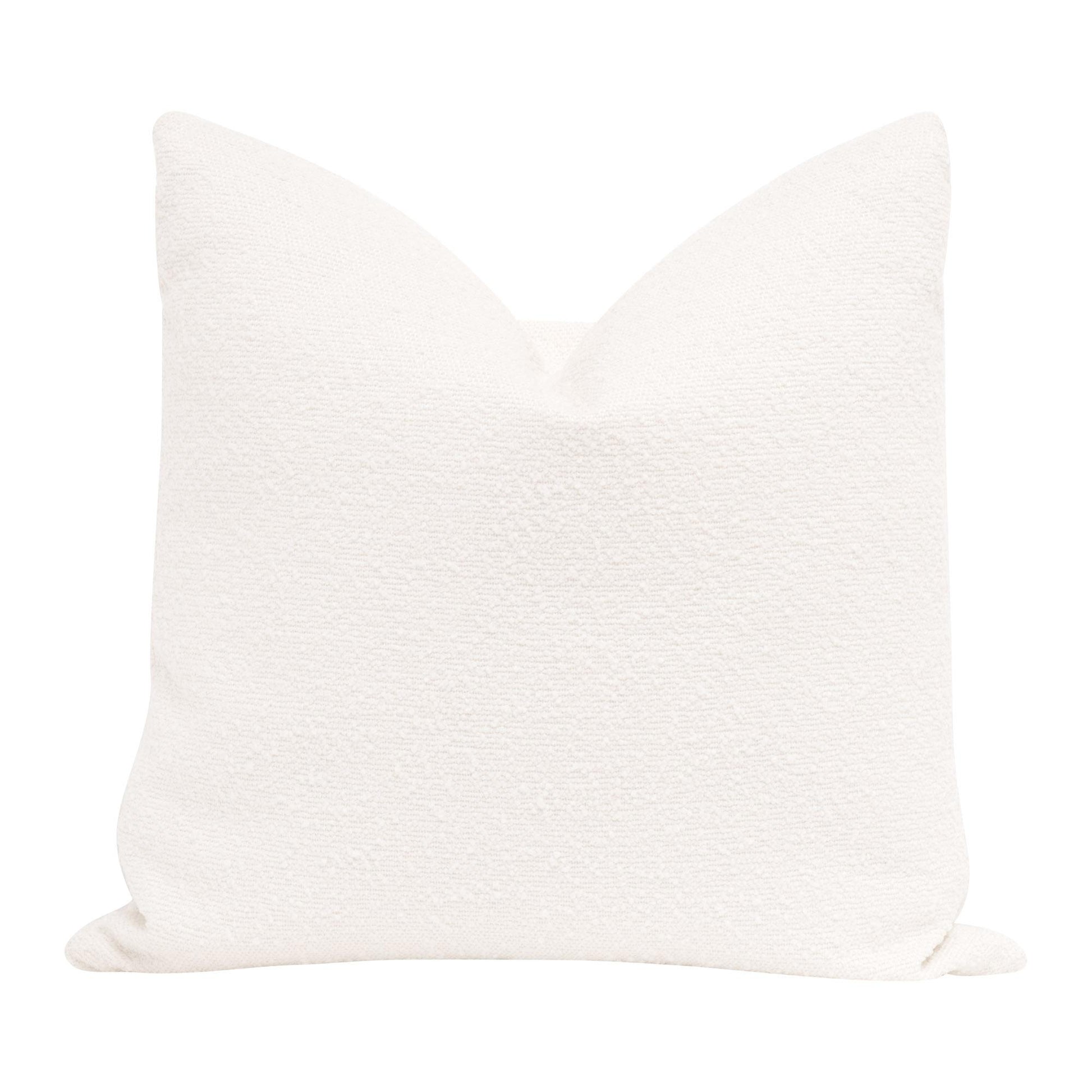 Experience ultimate comfort and style with the Essentials For Living Basic 22" Essential Pillow. This pillow features a stunning LiveSmart boucle snow white upholstery that's both durable and stain resistant. The 96% polyester and 4% acrylic fabric form a textured material that adds a touch of luxury to your bed. The pillow measures 22" wide, 5" deep, 22" high, and has a 100% down filling, creating a plush and cozy surface that's perfect for snuggling up on the couch. The knife-edge detail adds a clean and polished look to the pillow. Bring comfort and style to your home with this light-colored pillow that is sure to perfectly blend with many home furnishings.